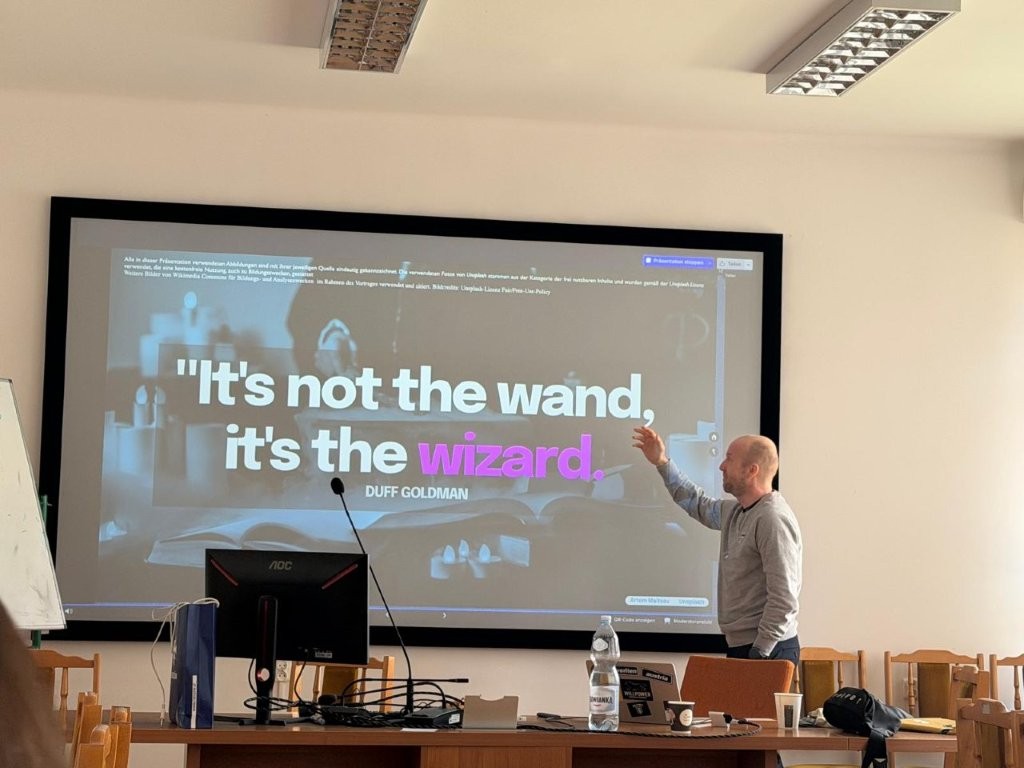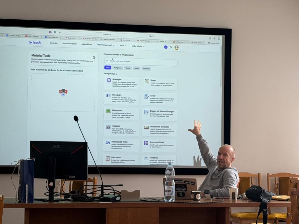 Warsztaty poprowadził Thomas Strasser z Pädagogische Hochschule Wien, specjalista w zakresie wykorzystania nowych technologii w nauczaniu języków obcych. Program szkolenia, obejmujący cztery jednostki dydaktyczne, miał wyraźnie aplikacyjny charakter i koncentrował się na praktycznych aspektach integracji narzędzi sztucznej inteligencji w procesie dydaktycznym.