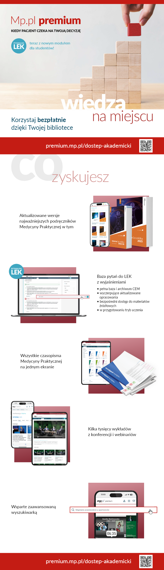 wykłady i webinary: dostęp do nagrań z najważniejszych konferencji medycznych;